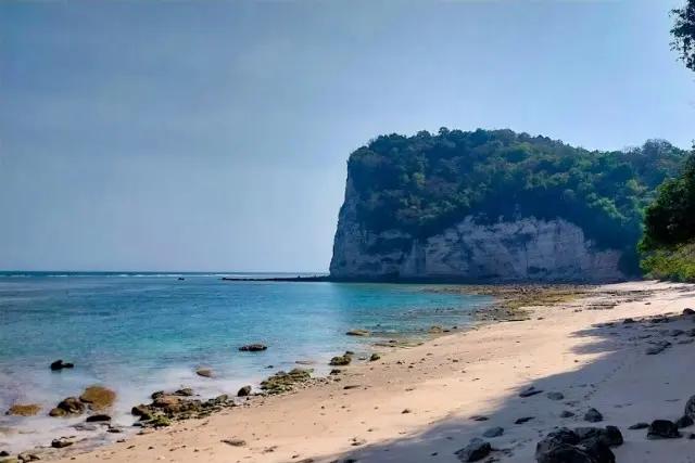 Pantai ini memiliki pemandangan yang indah, seperti tebing batu dan tebing karang yang membuatnya sangat cocok untuk berfoto.